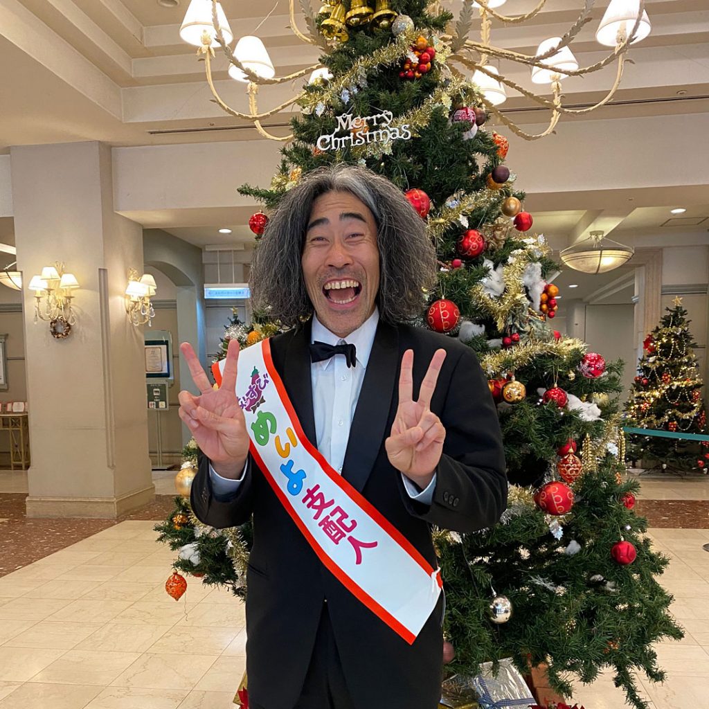 毎年恒例のホテルイベント「ライトアップメッセージ」にて、福島県出身のタレント「なすび」さんに本タスキを着用いただき、“めいよ支配人“としてご出演いただきました。